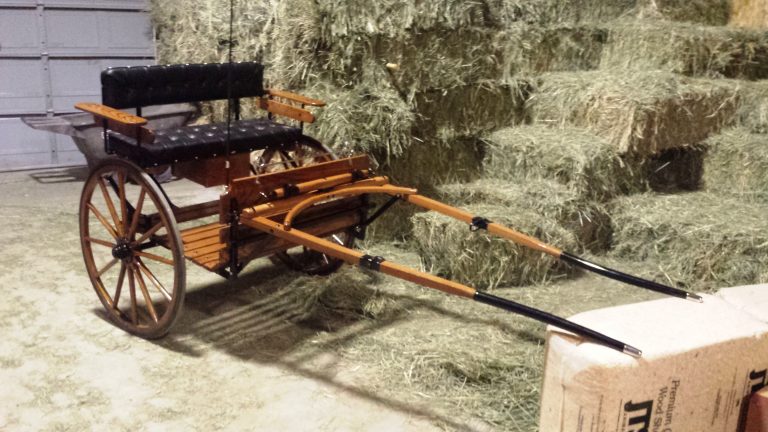Shipping within the U.S. is ground for carts fitting horses up to ~38″. Larger sizes ship by freight—call for a quote.