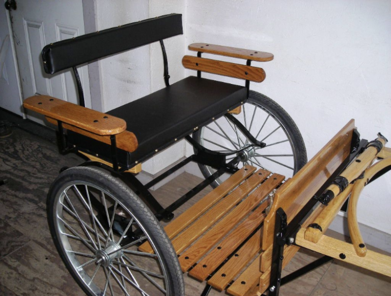 Easy Entry cart with wooden shafts and 20″ wire wheels: $895 . Upgrade to 26″ wheels: + $95