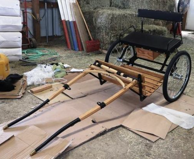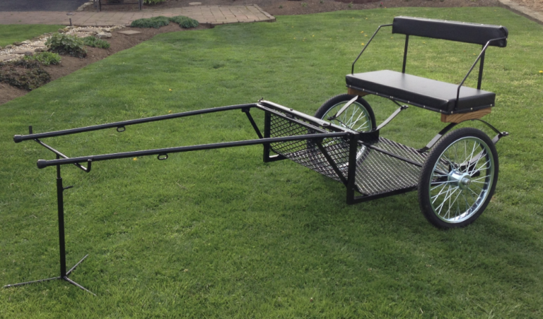 Shipping within the U.S. is ground for carts fitting horses up to ~38″. Larger sizes ship by freight—call for a quote.
