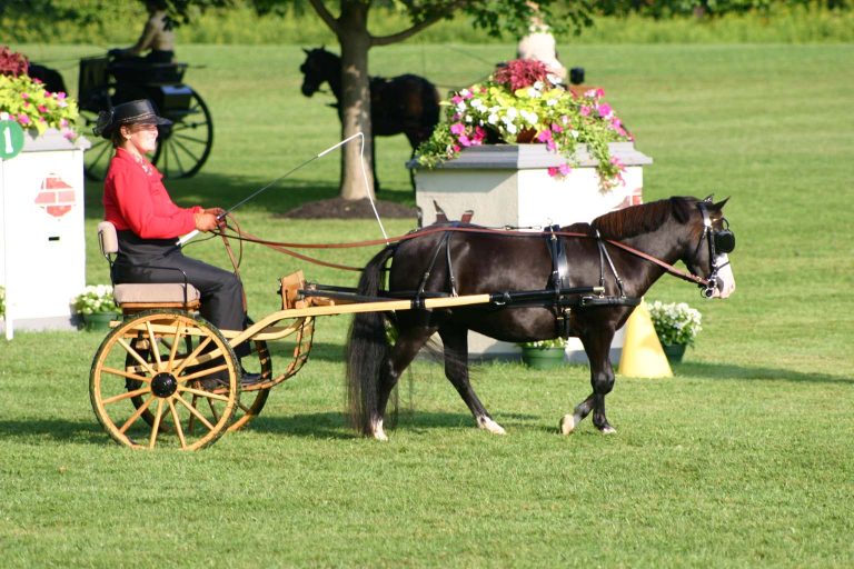 The Spares box is standard (inside measurement is 11″ deep x 8″ wide x 4″ high). Double bend shaft dip lower than standard shafts. It is a bit higher than our Show Pleasure or Meadowbrook cart so it takes a smaller wheel. Floor slats end around the axle. Can’t add fenders, folding or split seat – meant to be a side entry cart. Mini thru small pony size weighs ~112 lbs before options.